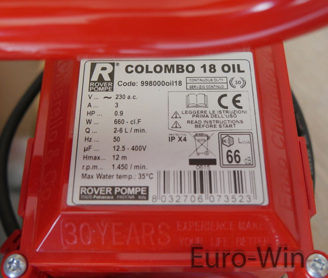 Urządzenie wyposażone w pompę z silnikiem Rover Pompe (pompa ta nie jest pompą samozasysającą - wymaga zalania)