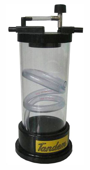 Przeźroczysty plastik cylindryczny pojemnika z pokrywą do napełniania, która jest włożona do filtra świecowego.