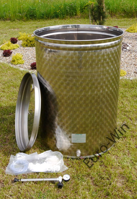 Zbiornik ze stali nierdzewnej INOX - przeznaczony do fermentacji lub leżakowania.